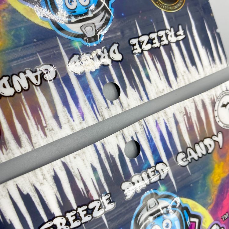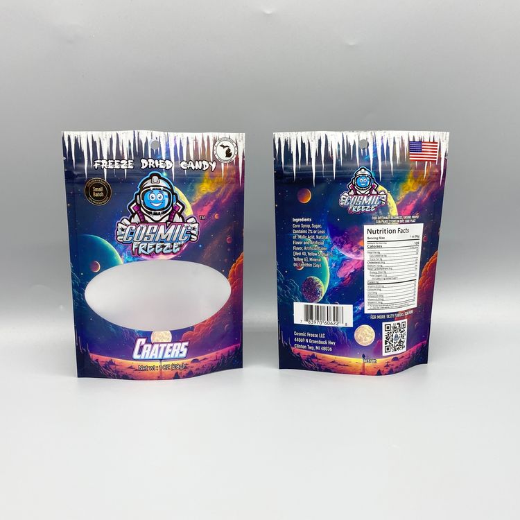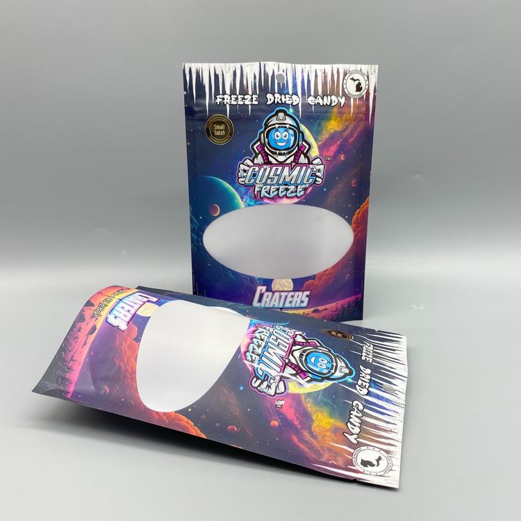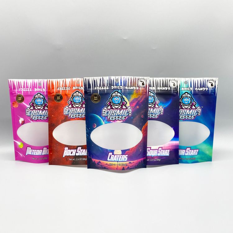 冻干糖果袋采用了时尚的镭射膜材质,结合自立袋设计及独特的开窗特性,为现代消费者提供了一种既实用又具吸引力的包装方案。