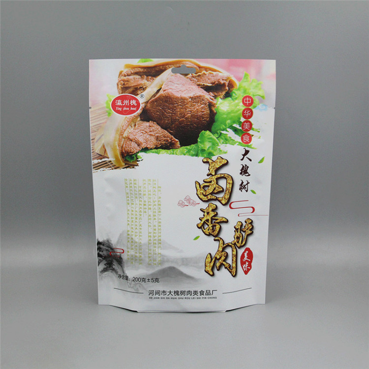 熟食包装多需要进行高温蒸煮,蒸煮袋多用三层材料复合而成,具有代表性的蒸煮袋结构是:外层为聚酯膜,作加强用;中层为铝箔,作防光、防湿和防漏气用;内层为聚烯烃膜(如聚丙烯膜),作热合和接触食品用。