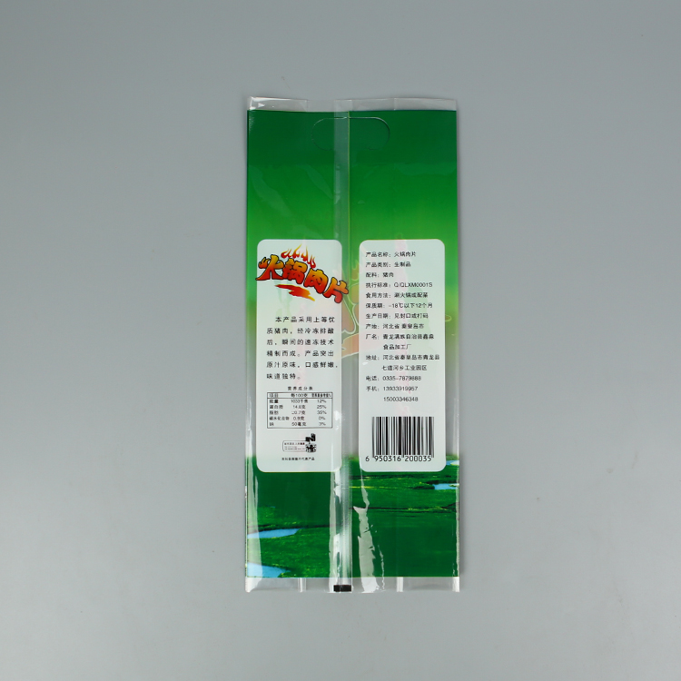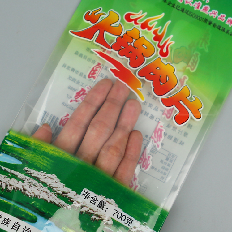 产品名称:700g火锅肉片+亮面塑料复合+背封带折边
