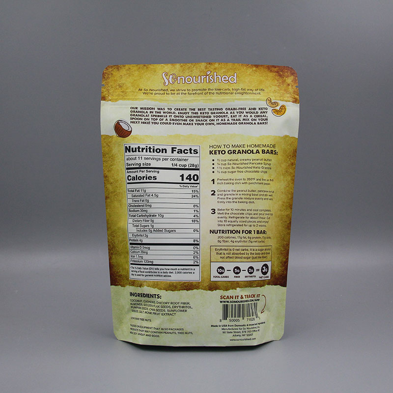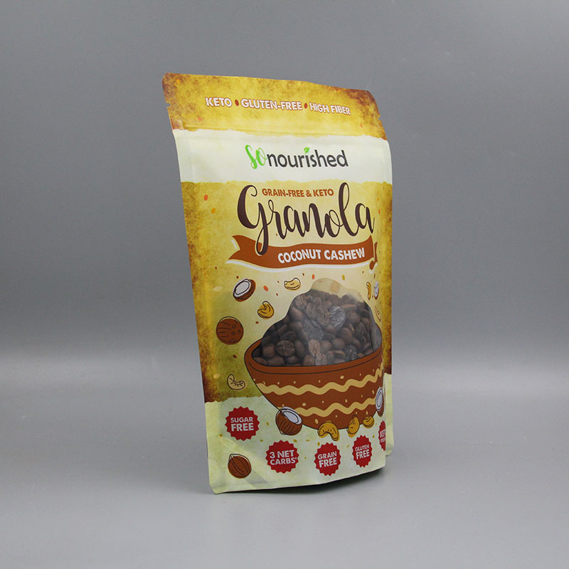 自立袋是一种相对新颖的包装形式,在提升产品档次、强化货架视觉效果、携带轻便、使用便利、保鲜和可密封性等诸多方面占有优势。自立袋由PET/foil/PET/PE结构层压而成,也可以有2层,3层等其他规格材质,根据包装的不同产品而定,可根据需要增加隔氧保护层,降低透氧率,延长产品的货架寿命期。